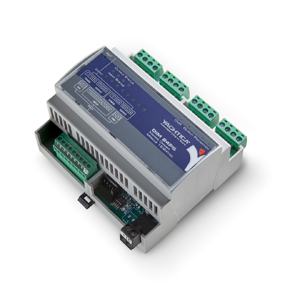 Il DIM 24PS è un modulo con microcontrollore integrato, dotato di 4 uscite di potenza per il controllo di sorgenti luminose a 12/24VDC, in modalità dimmer o on/off. Il modulo permette il controllo e la gestione di sorgenti luminose LED monocromatiche pilotate in tensione (con o senza elettronica aggiuntiva) o con segnale PWM (se muniti di apposito driver a 3 fili). Può inoltre gestire linee incandescenti ed alogene, pilotate a 12/24VDC. La corrente massima erogabile da ciascuna uscita è pari a 10A.